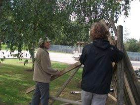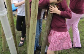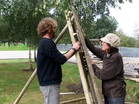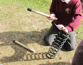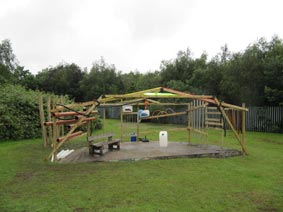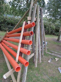 During 2011 to 2012 I was asked by Woodside Primary School in the Midlands if I could make some outdoor instruments in their extensive grounds. Joined by colleague Matt Shaw (3D artist and sculptor) we were commissioned to build some large-scale instruments and to lead a couple of sessions with children and teachers to demonstrate their use which included using resources themselves to build temporary structures.