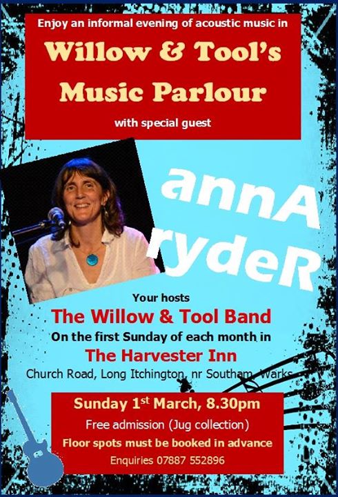 « All Events This event has passed. The Harvester Inn, Long Itchington March 1, 2015 @ 8:30 pm - 11:00 pm Free Event Navigation « Hythe Nettlebed Folk Club » Gosh I have a gig! How unexpected. This is the Facebook poster… + Google Calendar+ iCal Export Details Date: March 1, 2015 Time: 8:30 pm - 11:00 pm Cost: Free Event Category: Solo Gig Venue The Harvester Inn Church Road, Long Itchington Near Southam, CV47 9PE + Google Map Phone: 07887 552896 Organiser Pete Willow