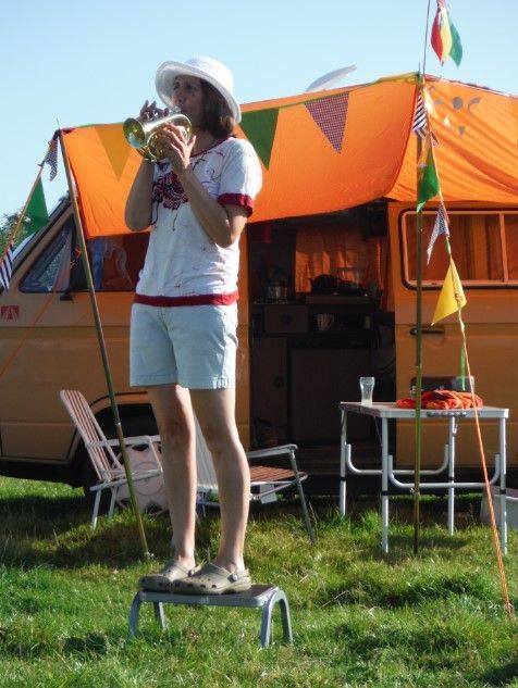 Each T-shirt is made from an original design by annA. This was made following Cropredy Festival 2014 when annA was worried that people camping on the site weren’t waking up in time to enjoy the festival so played a lovely fanfare on her trusty pocket-trumpet to make sure people got up… For some reason Rob did not seem very pleased.